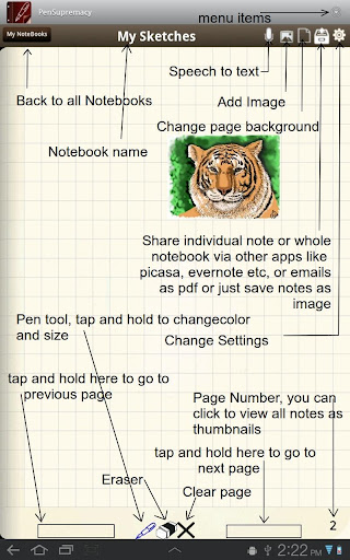 2. POWER : PenSupremacy gives you the power to enhance your productivity. You can easily convert your notes to PDF and email them or share them with other apps like Evernote. You can share your sketches easily with Facbook, Picasa, PicSay etc.