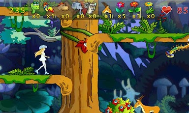 Two sunny twins escaped from the volcanic eruption that caused the wilderness fire. On their way these exotic small female fugitives save all the helpless inhabitants of magic forest which is full of dangers by hiding the small animals in the strange floral shelters on their heads where they can feel safe. Two sunny beings are the only ones who are able to free the helpless tenants of the fairy forest from the fiery lava and overcome all the obstacles of jungle which is full of predators.